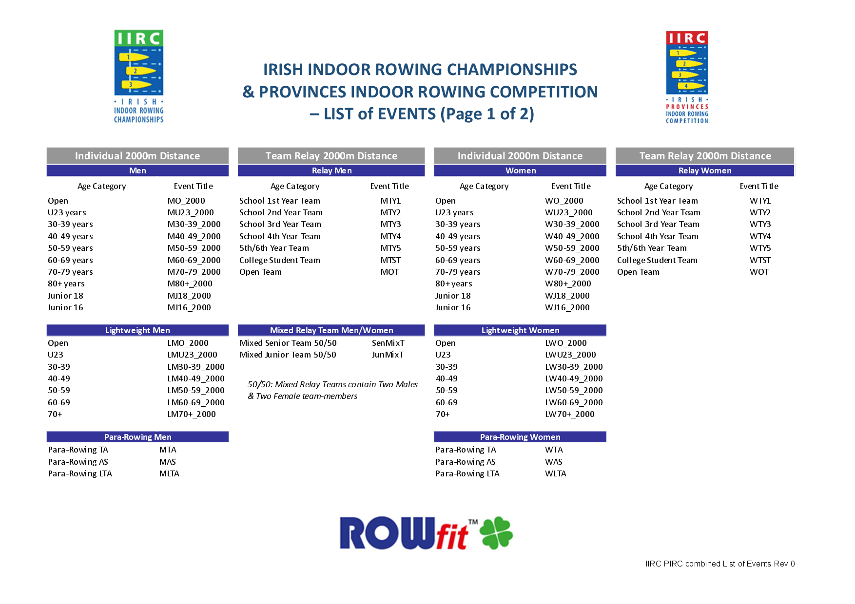 List of Events